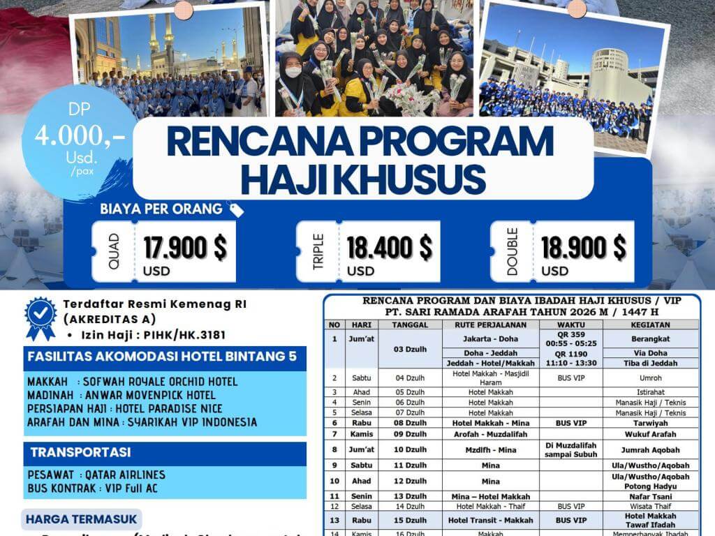 - Pada bulan Ramadhan dipotong 75% dari biaya paket