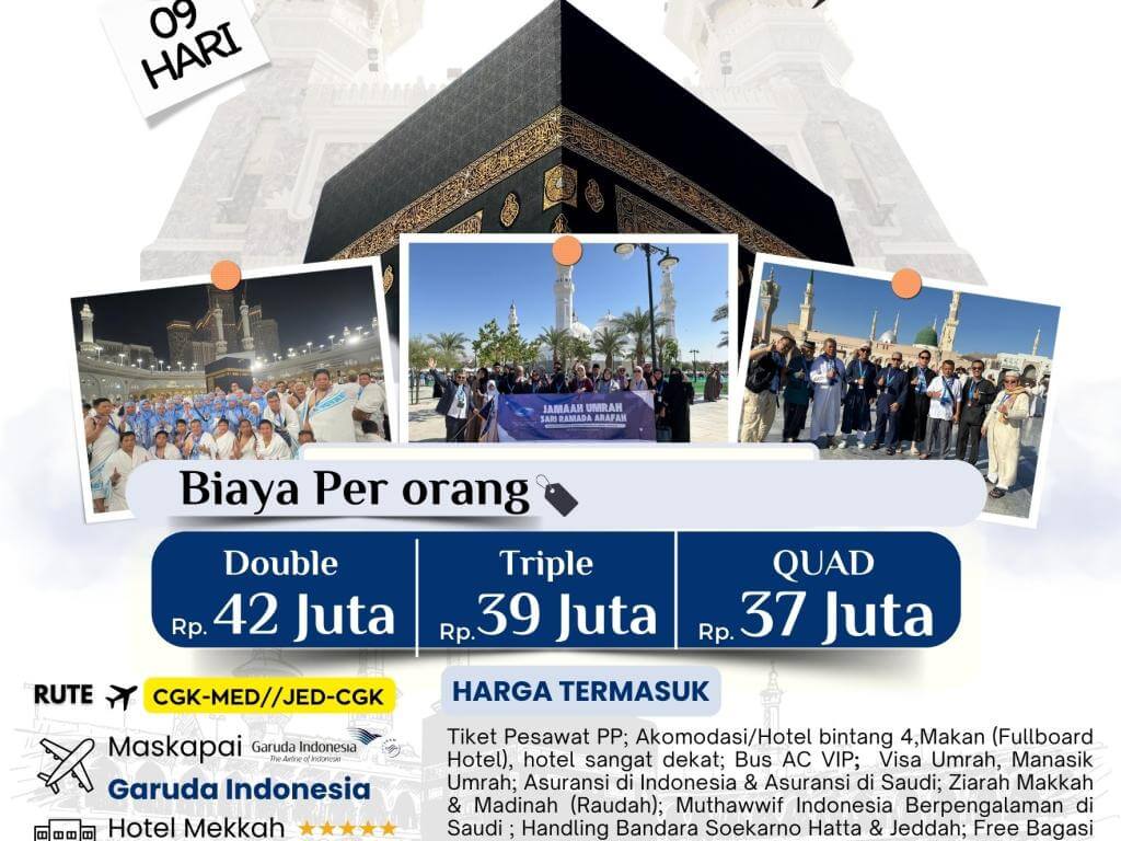 - Pembatalan: Pembatalan oleh jamaah setelah proses visa/tiket biasanya dikenakan potongan biaya sesuai kebijakan travel.